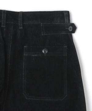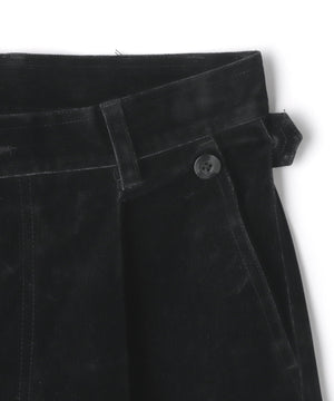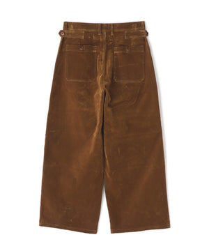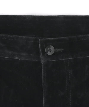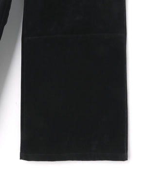 重厚感のあるデニム素材にフロッキー加工を施し、独特の風合いと深みのある表情を演出した一本。