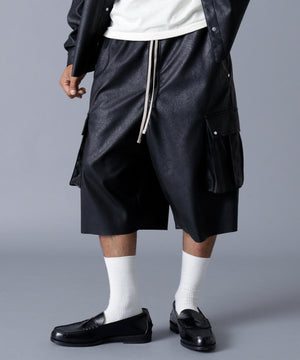 シボ感のある柔らかな質感のエコレザーを採用したカーゴショーツ。