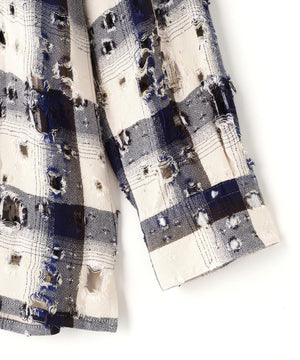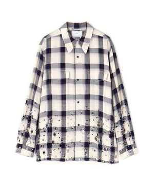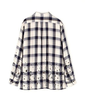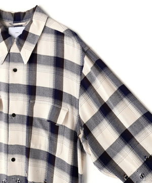 レーヨン100%、さらりとした肌触りのオンブレチェックシャツ。