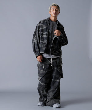 同シリーズのカーゴパンツとセットアップとしての着用はもちろん、ストレートやルーズシルエットのデニムパンツやスウェットパンツ、ショーツなど幅広いボトムスとスタイリングいただけます。