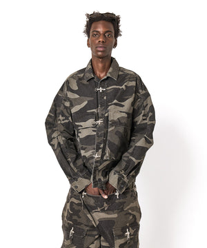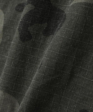 第二次世界大戦中にアメリカで軍服やパラシュートに使用されていたリップストップ生地を採用したカーゴシャツジャケット。