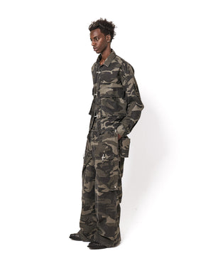 軽量で丈夫なリップストップ素材やカーゴポケットがミリタリー感を演出しながら、