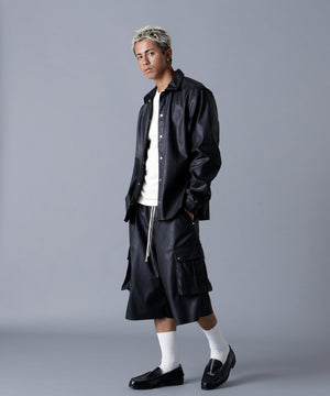 同素材パンツとのセットアップとしての着用もおすすめなほか、モノトーンのボトムスやルーズシルエットのデニムパンツやカーゴパンツなど幅広いボトムスと合わせてお使いいただけます。