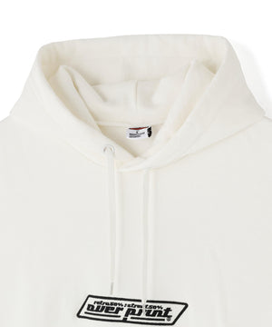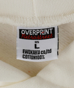 ブランド名「OVER PRINT」を大胆に配したグラフィックの中から、キャラクターが“飛び出す”ようなアートワークが特徴的な一着。