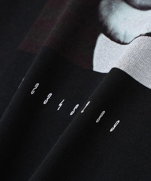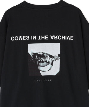 背面には「COMES IN THE ARCHIVE」の印象的なタイポグラフィと、美しくもミステリアスなフォトプリントが大胆に配置され、唯一無二の存在感を放ちます。