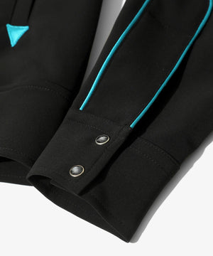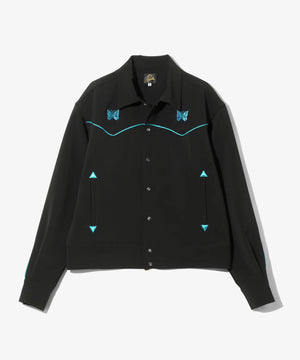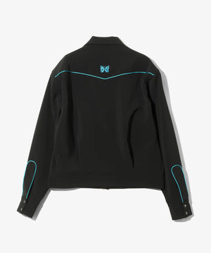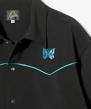ショート丈とワイドな身幅のバランスでデザインされたカウボーイシャツジャケット。随所に施されたパイピングや蝶の刺繍、スナップボタンなどのウェスタンウェアの装飾的なディテールが〈NEEDLES〉らしい一着です。弾力のある厚手の素材感もジャケットのレトロなムードにマッチしています。同素材でパンツも展開されており、セットアップでもお楽しみ頂けるアイテムです。