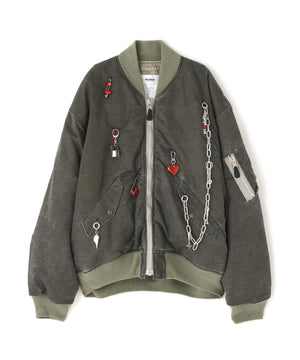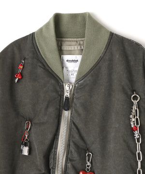 背中や袖にも散りばめられたこれらの飾りは、遠くから見ると無骨な印象なのに、近づくほどに愛嬌を感じます。