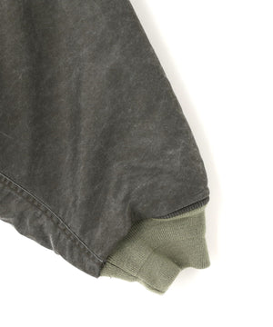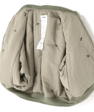 生地加工によって、ヴィンテージライクな雰囲気を持つこのボンバージャケットは、アームホールを深めに設定し、袖まわりにゆとりをもたせることによって、丸くボリュームのあるシルエットになっています。