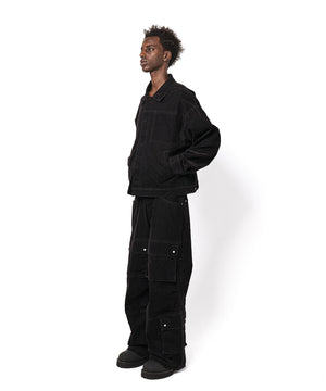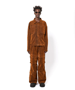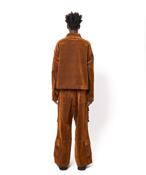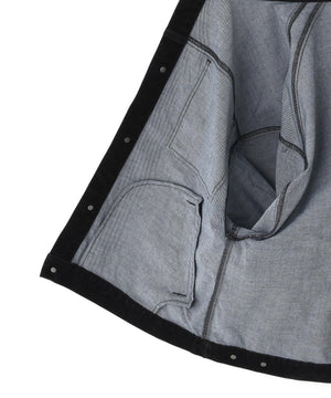 素材には厚みのあるコットンデニムを使用し独自のフロッキー加工によってビロードのような柔らかい質感を実現。