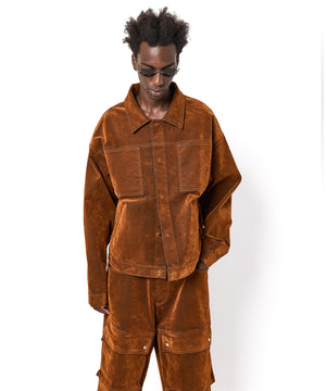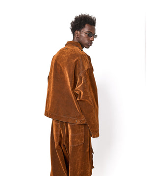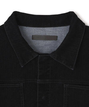 ベーシックなGジャンのシルエットをベースに、フロッキー加工を施したデニム素材で上質さと季節感を演出するショートジャケット。
