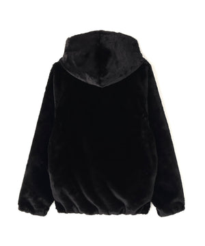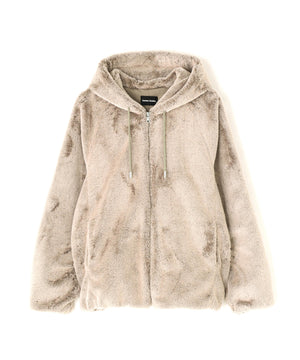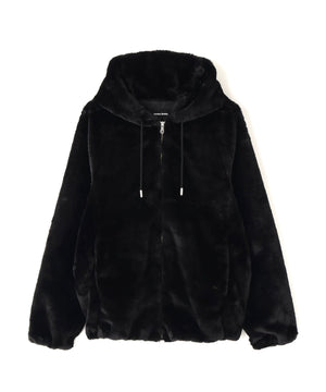柔らかなエコファー素材を使用した、シーズンムード漂う「FUR HOODIE」。