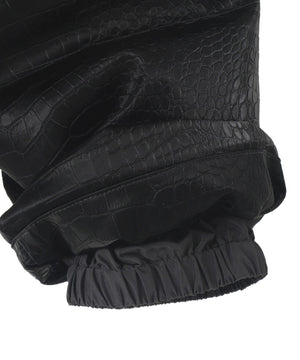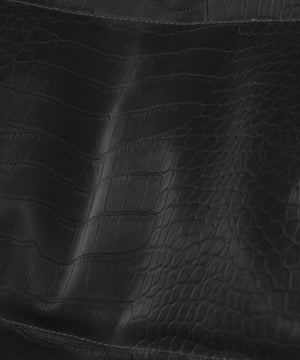 リアルなクロコダイルパターンを型押しで再現したフェイクレザー素材は重厚感とラグジュアリー感を兼ね備えながら柔らかな着心地をキープ。