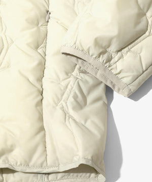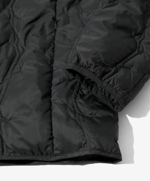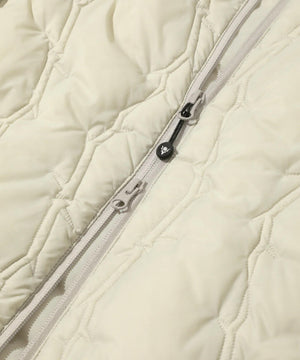 本コレクションは〈TAION〉の定番ベーシックラインをベースに、ダウンジャケットを含む全3型で展開。高機能なスペックはそのままに、〈SOUTH2 WEST8〉ならではのアレンジを随所に加えたスペシャルなラインナップです。なかでも注目は、〈SOUTH2 WEST8〉オリジナルのホーン柄をダウンステッチで表現した、特別仕様のキルティング。生地は丈夫さを兼ね備えた高密度マイクロリップストップ生地を使用。さらに、フロントZIPの引き手パーツや収納袋にはオリジナルロゴをあしらい、ディテールにまでこだわりが詰まっています。