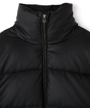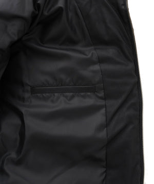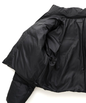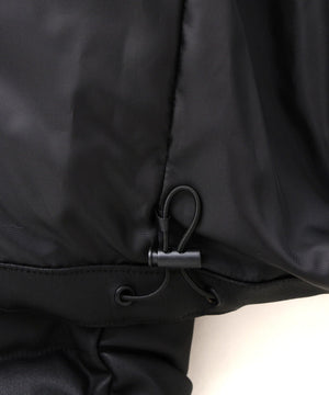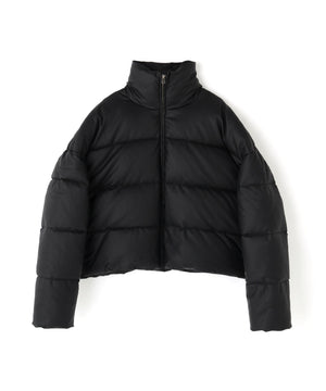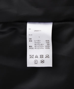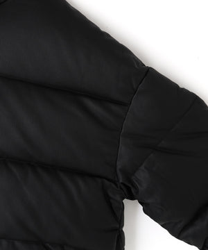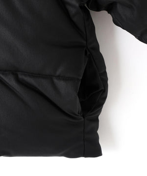 光沢感あるコーティング素材を使用したコンパクトなシルエットの中綿入りブルゾン。
