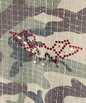 左胸にラインストーンとピアスの組み合わせで装飾を施しました。