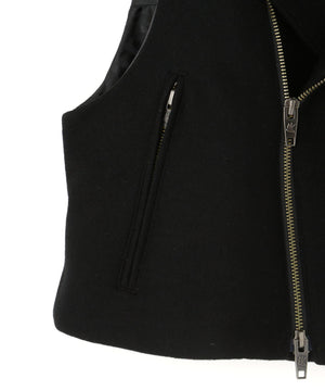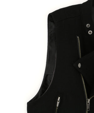 ウール100%の厚手メルトン素材を使用した、本格派ダブルジッパー仕様のモーターサイクルベスト。防寒性に優れ、冬の冷たい風をしっかり遮断しながらも、動きを妨げない絶妙なフィット感を実現。