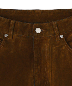 重厚感のあるデニム素材にフロッキー加工を施し、独特の風合いと深みのある表情を演出した一本。