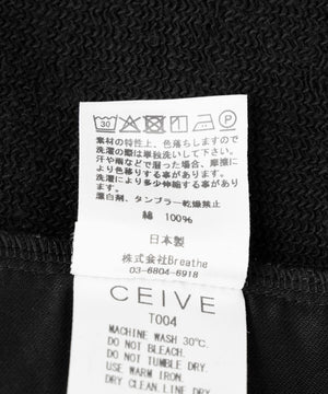 ブランド名のシーヴは「ceive =受け取る」に由来しており、「conceive」「perceive」「receive」など接頭語がつくことで様々な意味に変化する、汎⽤性の⾼さにブランドの方向性を重ね合わせた。⽇常のあらゆるシーン、着る⼈それぞれの個性、多彩なスタイルになじむデザインを提案しつつ、シンプルさの持つ強さを追い求めていく、というブランドのスタンスが表現されている。