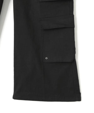 ミリタリーテイストをベースにDankeSchonらしいストリート要素を融合させたフレアカーゴパンツ。