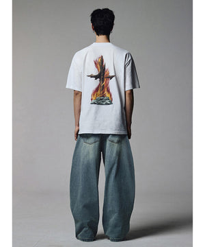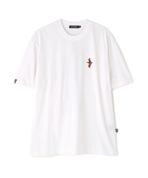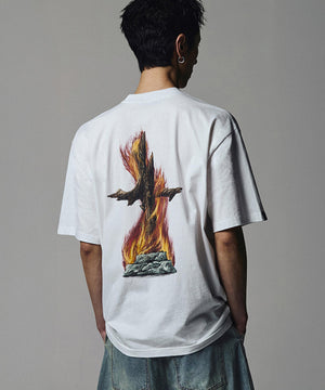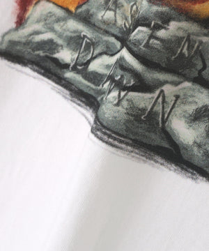 中世キリスト教の歴史を連想させる存在感抜群のイラストを飾ったTシャツ。