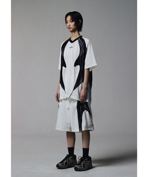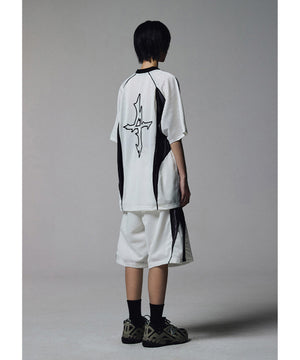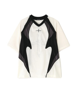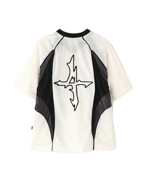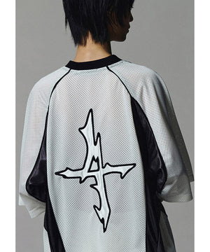 異素材の切り替えデザインがスポーティーな印象を与えるメッシュTシャツ。