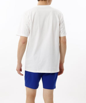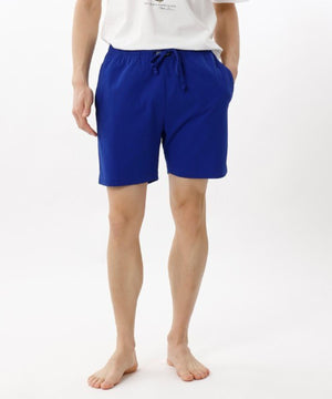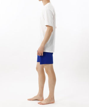 オーガニックコットン100%の天竺生地を使用した、ショートスリーブクルーネックシャツとスリープショートパンツのスリープウェアセットです。肌触りの柔らかい、快適な着心地が特長です。トップスは着丈と身幅にゆとりを持たせたリラックスフィットで、前身頃にアイコニックなPOLOベア(タヒチベア)をプリント。ボトムスはシーズナルカラーのブルー無地で股下寸法を膝上丈に設定したスタイリッシュなデザインで、フロントセンターに縫い付けたラベルもポイント。両サイドにポケット付き。