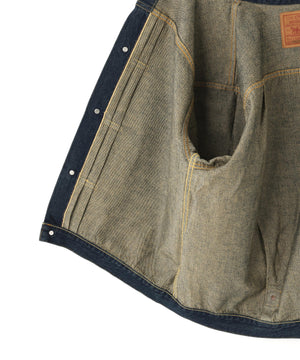オリジナルに忠実に、このジャケットには、ダブルのプリーツが入った前面、シングルの胸ポケット、露出した銅のリベット、調節可能なフィットのための銅製のプロングが付いたシンチバックなど、特徴的なディテールが施されています。1936年は、Big E Red Tab が Levi's 製品に追加された最初の年でもあります。