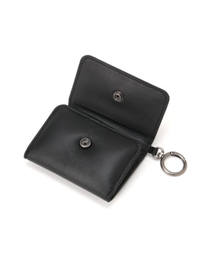手に馴染むコンパクトなフォルムの中に、カードスロットとキーリングをスマートに収めた実用性も魅力。