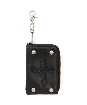 リアルなシボ感を再現したヴィーガンレザーがモードな風合いを放つカードウォレット。