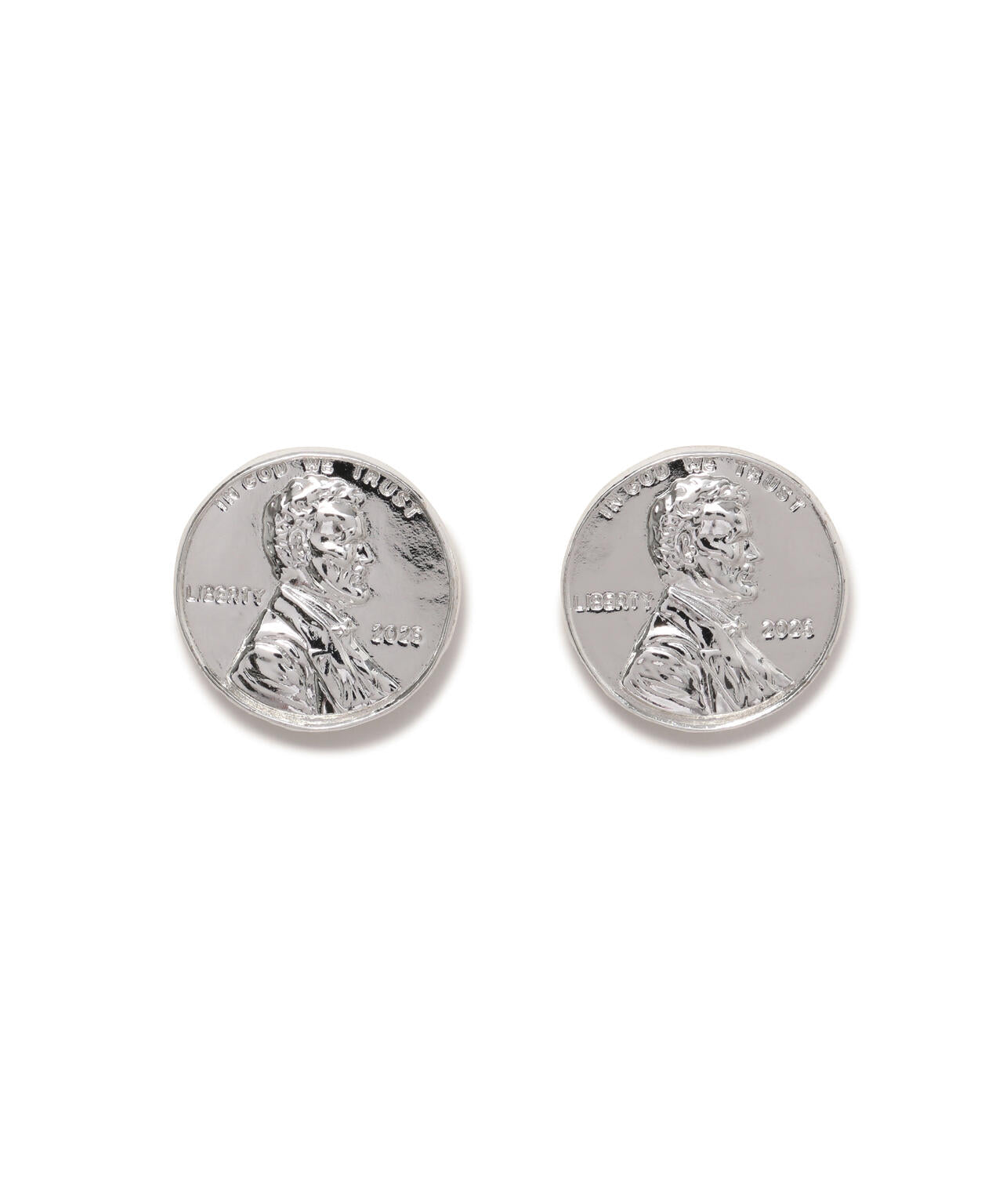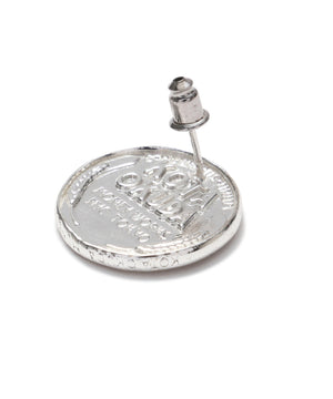 まるで本物のコインのような精巧なレリーフと、鏡面のように輝くシルバーカラーが印象的で、耳元に確かな存在感を与えます。