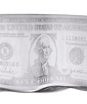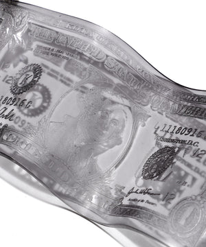 まるで本物の紙幣が歪み、凍結されたかのような造形は、「価値」や「貨幣」の概念を再解釈するアートピースとしての存在感を放ちます。
