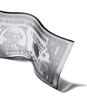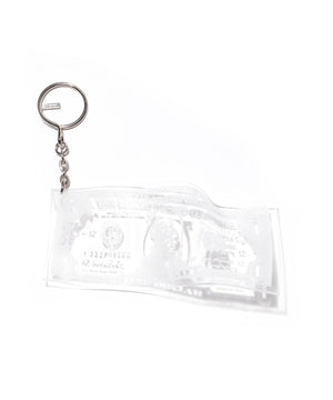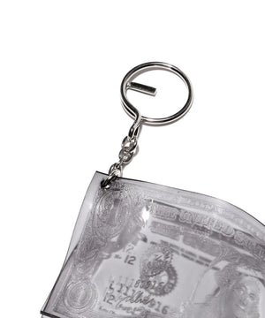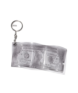透明な素材にドル紙幣のモチーフを閉じ込めた、KOTA OKUDAらしいコンセプチュアルなキーホルダー。