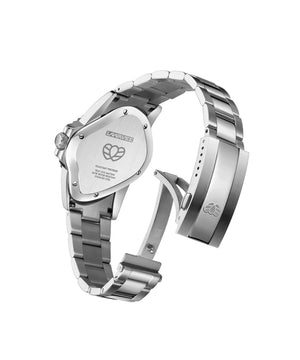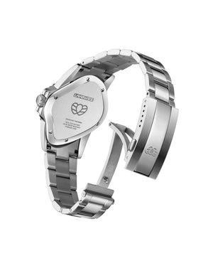 ステンレススチールブレスレットはコマ調整が可能で、手首のサイズに合わせて調節いただけます。