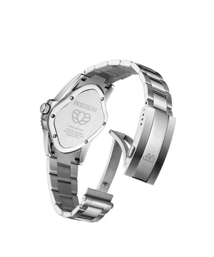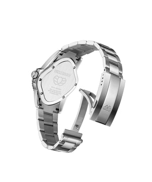 ステンレススチールブレスレットはコマ調整が可能で、手首のサイズに合わせて調節いただけます。