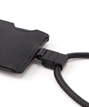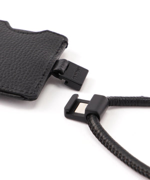 ・上質なレザーで仕立てた「カラビナ付iPhoneケース」に、「レザーストラップ付iPhoneアクセサリー」を組み合わせて使用。