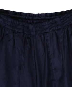 そして今回の別注の肝となるのが、ボディに採用したベロア素材。定番のトラックセットアップとは異なるしっとりとした落ち感とコシのある光沢が、穿くだけでスタイリングの表情を一段引き上げてくれます。