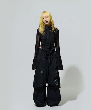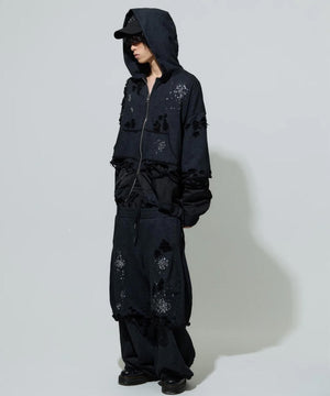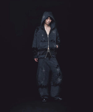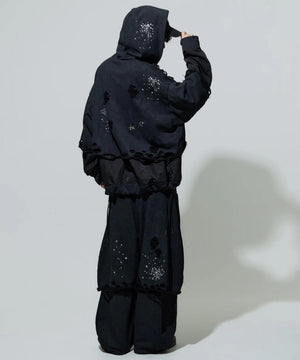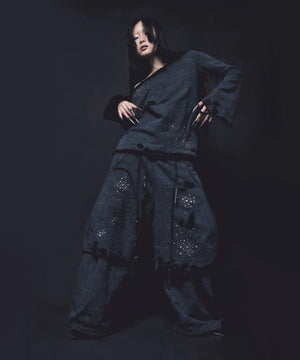 ・重厚感のあるオールブラックに繊細に施されたメタリックのホットフィックス加工が煌めきます