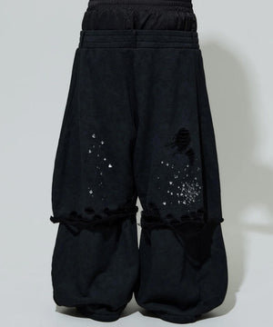 ・継続して人気のレイヤードスウェットパンツのパターンを立体的で存在感のあるシルエットにブラッシュアップ