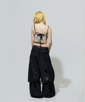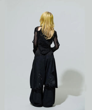 ・ウエストは3層のレイヤード風、タイツ風のレース部分は内側に入れ込んで収納も可