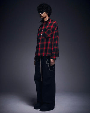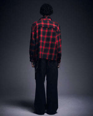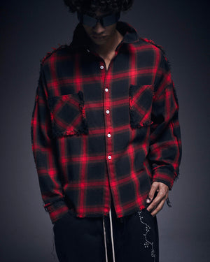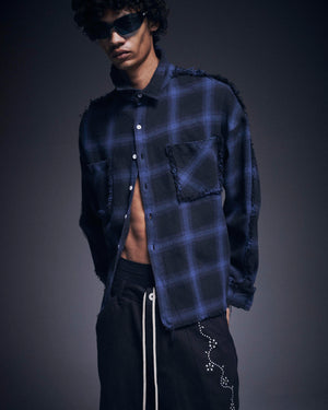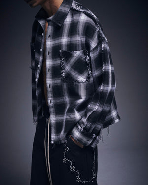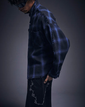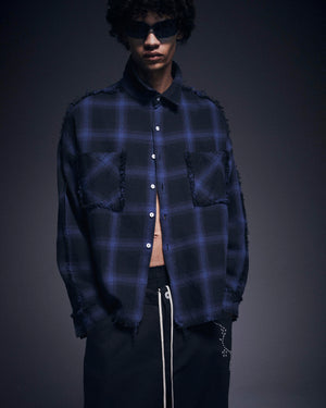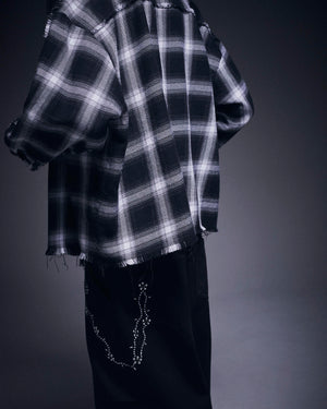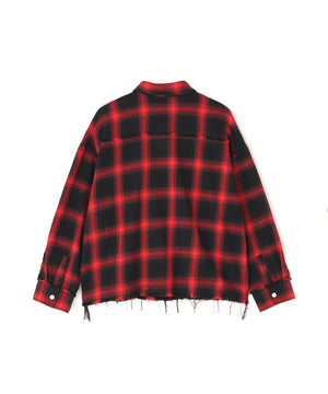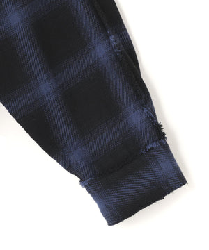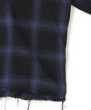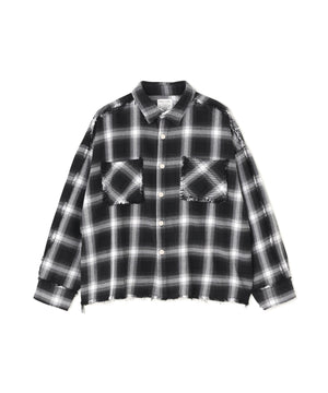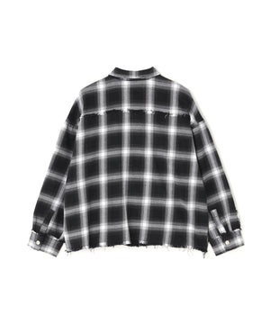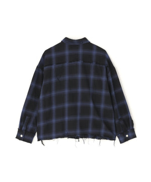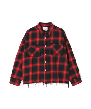 オンブレチェックをベースに随所へダメージ加工を施したフランネルシャツ。