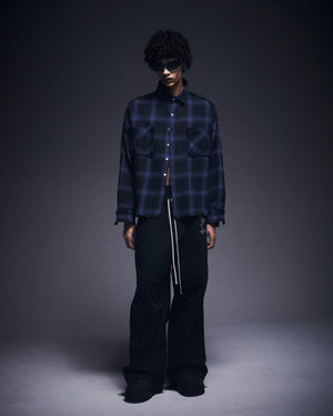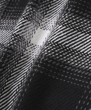ネル素材特有の柔らかな風合いに断ち切りやクラッシュディテールを加えることでグランジ感のある表情に仕上げています。
