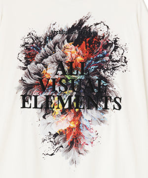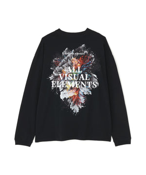 フロントはタイポグラフィによる静的な佇まいバックには多色のフラワーグラフィックと“ALL VISUAL ELEMENTS”のメッセージを重ね視覚的インパクトとストリートカルチャーを融合。