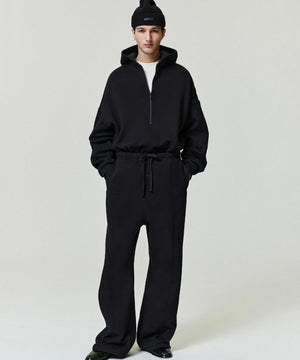 プロパティラウンジのハーフジップフーディーは、厚手の480GSMコアフリース素材を使用しています。
