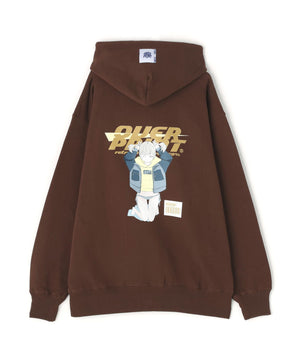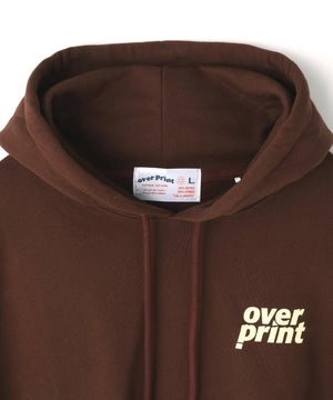 overprintらしいゆるさを醸し出すデザインが魅力のプルオーバーフーディー。