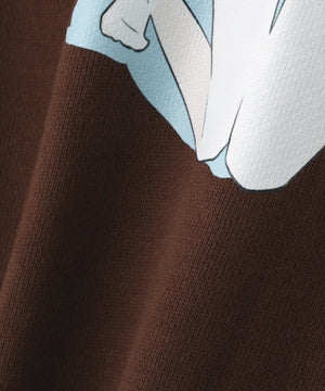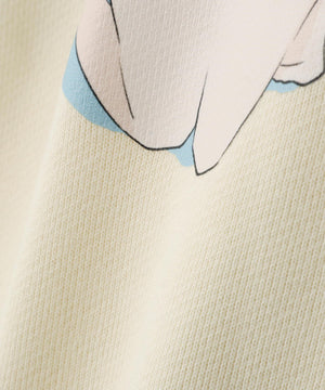 フロントはワンポイントロゴでミニマルに、バックにはポップな女の子グラフィックを大胆に配置した、