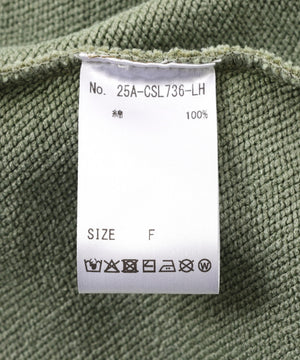 全体に施された細かなクラッシュと、胸元から広がるムラ染めの陰影が存在感を放ち、一枚で雰囲気のあるスタイリングへと導きます。
