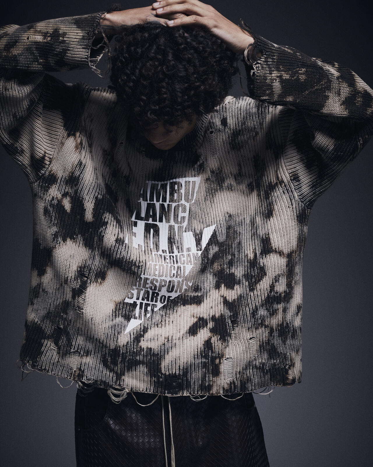 大胆なブリーチ加工とダメージディテールを施した「BLEACH KNIT」。