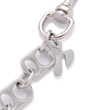 缶のプルタブをモチーフにしたパンツチェーン兼ネックレス。消費される日常の一部をジュエリーとして再構築し、型から制作したオリジナルパーツで丁寧に仕上げました。レディメイド的な発想がもたらすユニークなデザインは、既知の中に潜む新たな可能性を引き出します。
