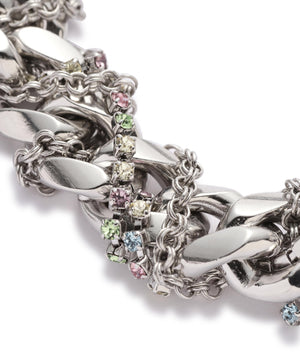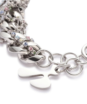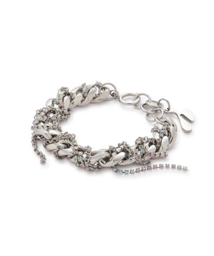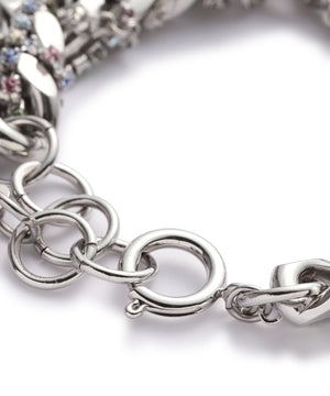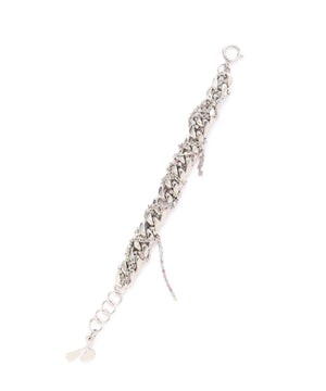 ミサンガからインスピレーションされてデザインしたブレスレット。チェーンをランダムに編み込んだ後にカットすることで、垂れたフリンジが躍動感を生み切れたミサンガを彷彿とさせるノスタルジーなデザインがポイント。腕もとで主張のあるデザインがスタイルのアクセントになります。