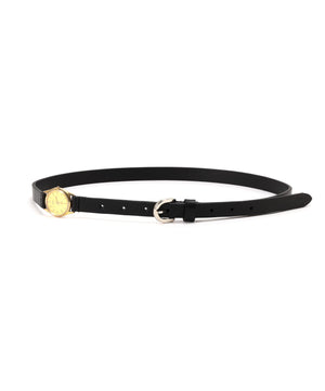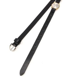 ヴィンテージの壊れた時計を再利用した、腕時計が肥大化したようなレザーベルト。時計本来の価値である機能が失われ行き場を失ったジャンク品をマテリアルとして選択することで新たな価値へアプローチしています。
